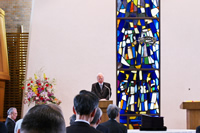 2011年3月31日,神学館礼拝堂において2010年度退社式が挙行された。2010年度退職者37名のうち,27名の参加があった。前奏に始まり,讃美歌斉唱,中村女子大学宗教部長の聖書朗読ならびに祈祷に続き,大谷総長,野本理事長からの感謝のことばがあった。それは,学園紛争,田辺移転,大学改革という荒波を乗り越え,現在,融和と協調の精神で一丸となって教育研究を推し進め,安定した発展を迎えるに至ったのも,お一人おひとりの献身的なご努力の賜物であるという感謝と,退職者の方々の新たな人生への祝福のことばであった。その後,永年本法人の教育研究充実のため大いに貢献された方々の功労に対し,本法人を代表して,野本理事長から感謝状が送られた。一人ひとりに感謝状が送られる度に,参列者から感謝の気持ちを込めた大きな拍手がおこり,別れを惜しんだ。最後に,野本理事長の祝祷で退社式を終了した。 |