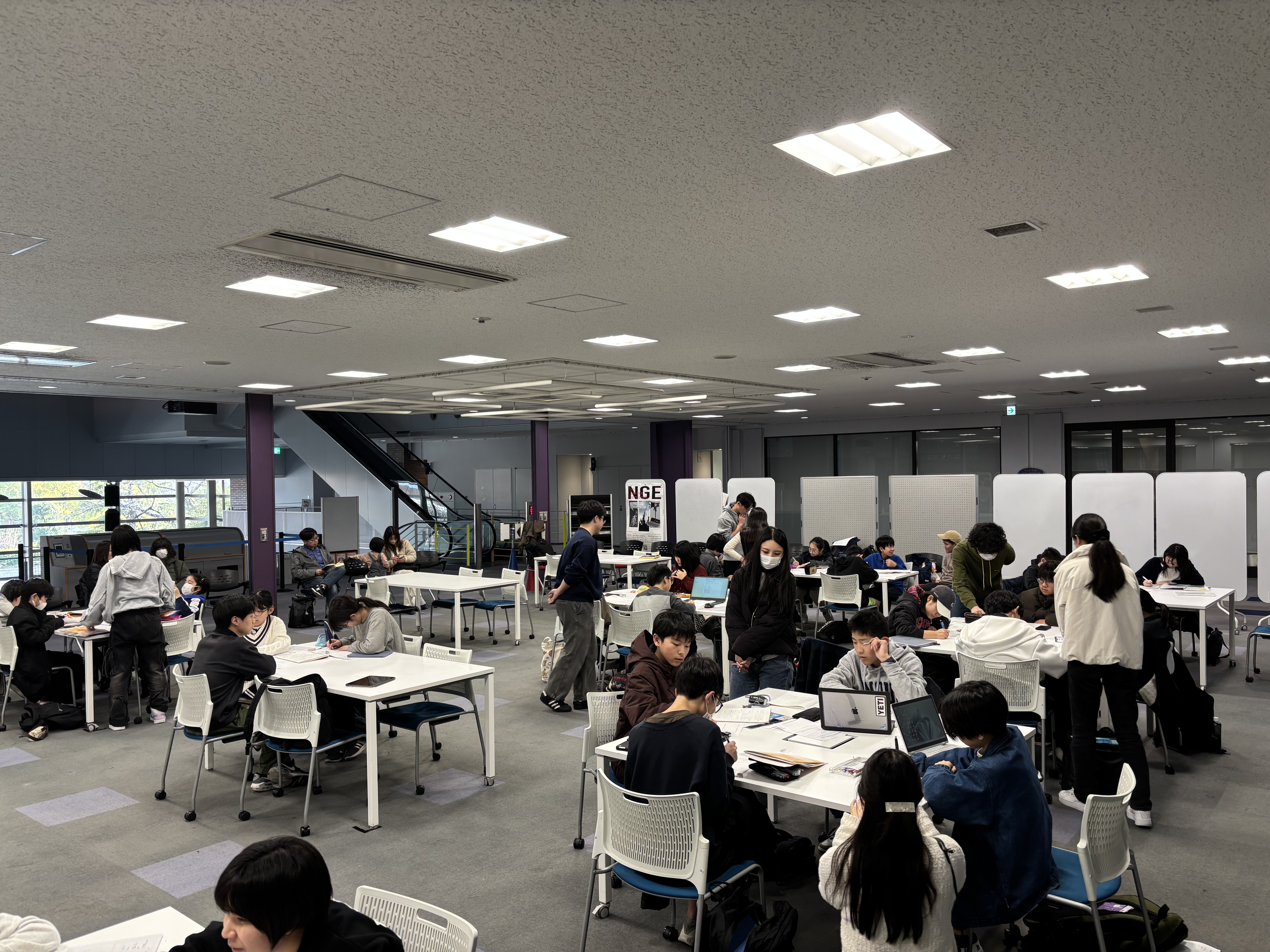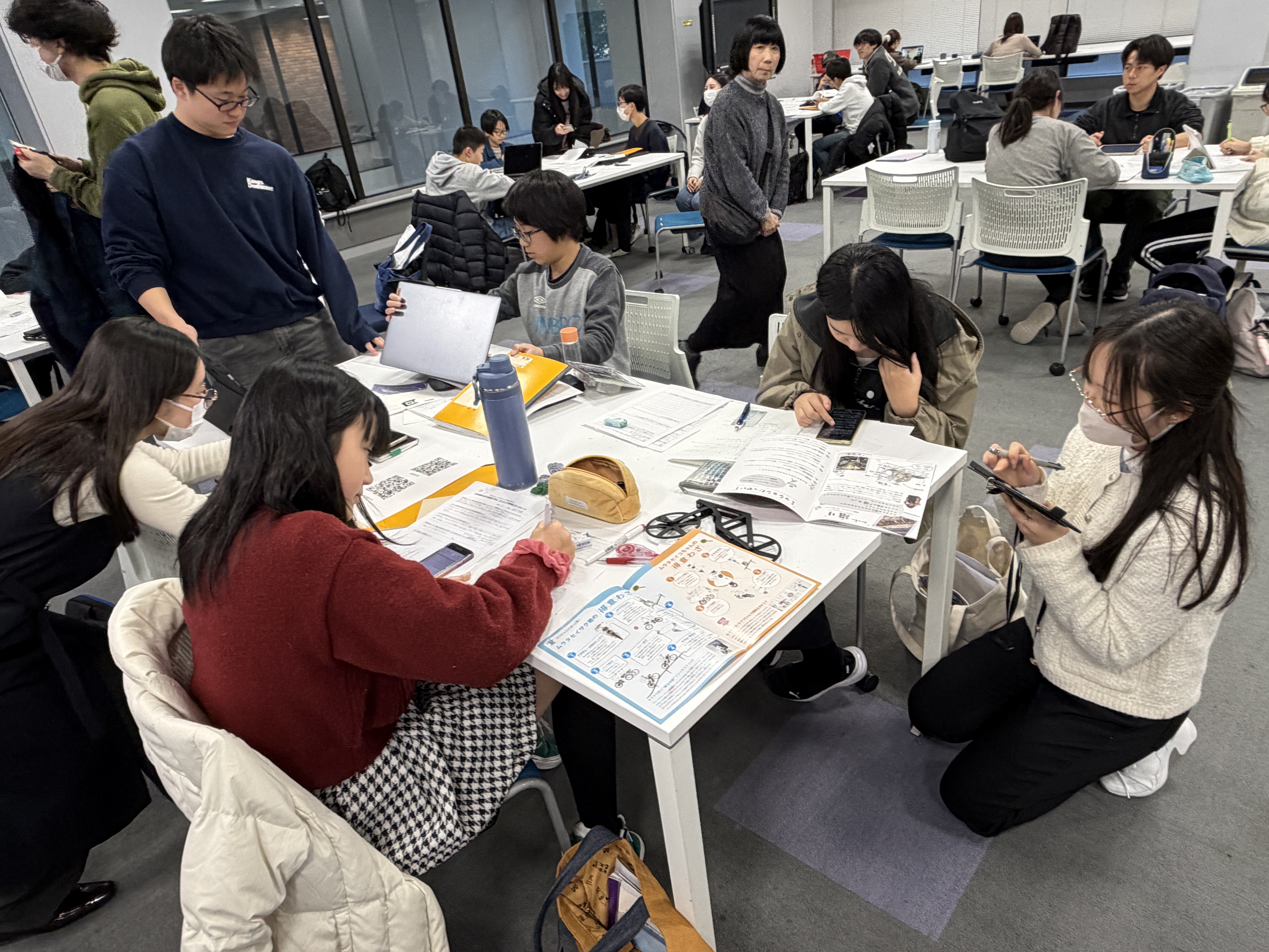 受講生がメンターの案内で、同志社大学京田辺キャンパスのシンボルであるラーネッド記念図書館を訪れ、閲覧室を中心に館内を見学しました。大学図書館ならではの蔵書の多さや空間の広さに、受講生からは「思っていたよりも大きい」「こんな場所で勉強してみたい」といった声が聞かれ、印象に残る時間となりました。昼食を大学生協食堂の紫苑館で取ったりしてちょっぴり大学の雰囲気も味わうことができました。