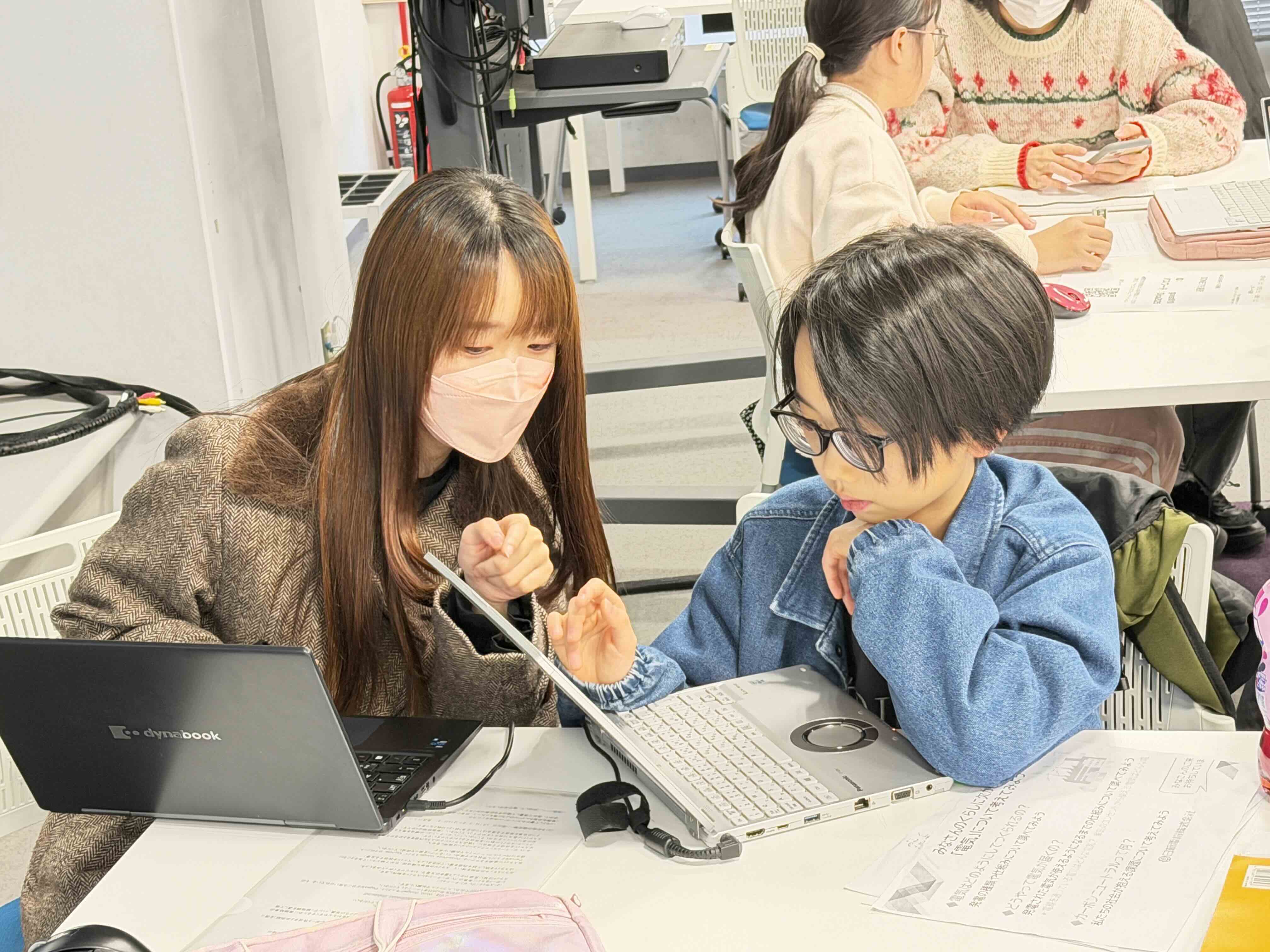 大学生・大学院生メンターは各テーブルで、「結論を先に示すと伝わりやすいよ」「このデータはグラフにすると見やすくなるね」など、具体的な助言を丁寧に行いました。受講生はその場で修正を加え、何度も画面を見直しながら完成度を高めていきます。